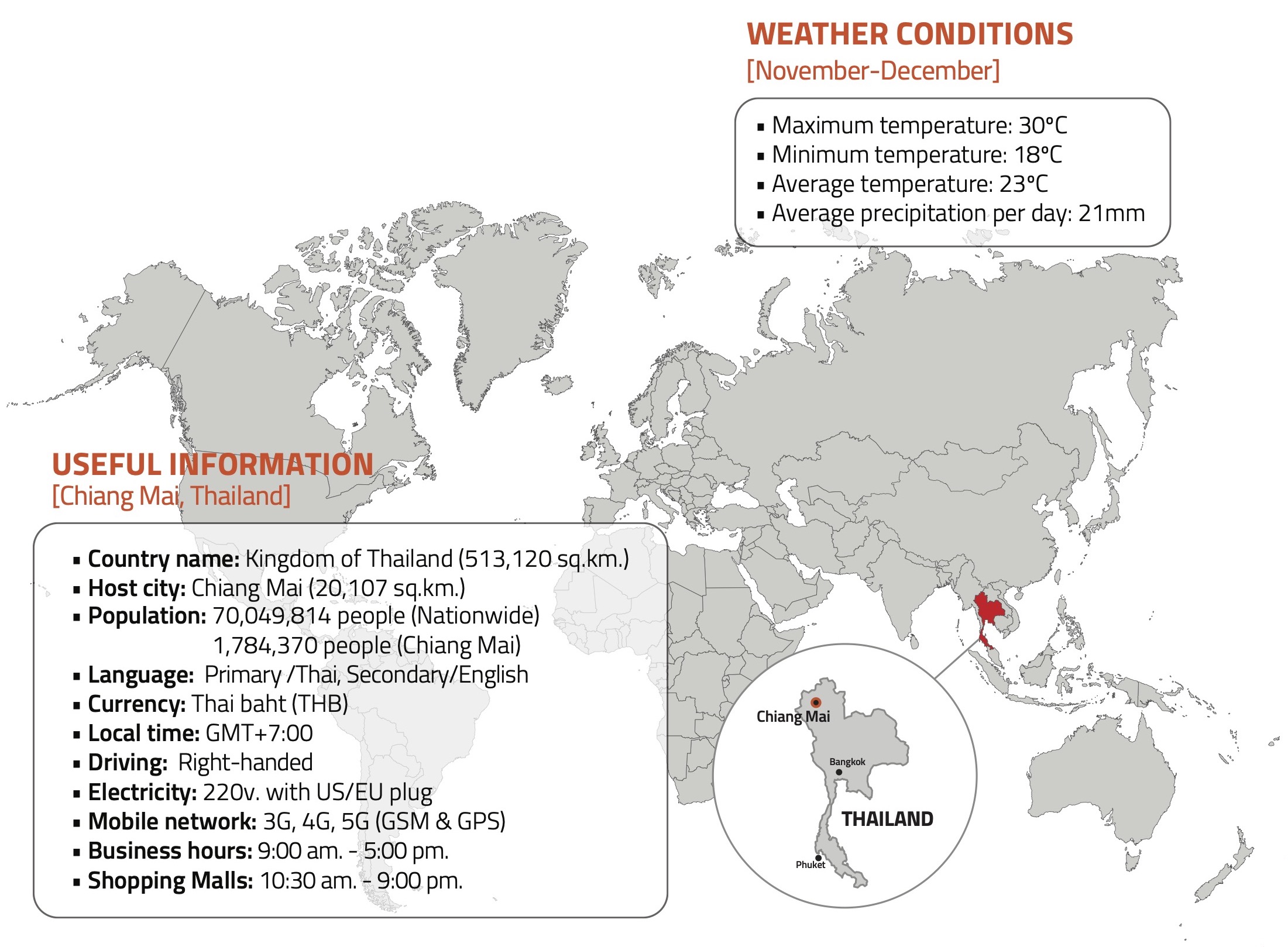 Welcome Dinner/U-Nimman Chiang Mai HotelPress Conference/CMECCRace Day/CMECCClosing Ceremony & Farewell Party |