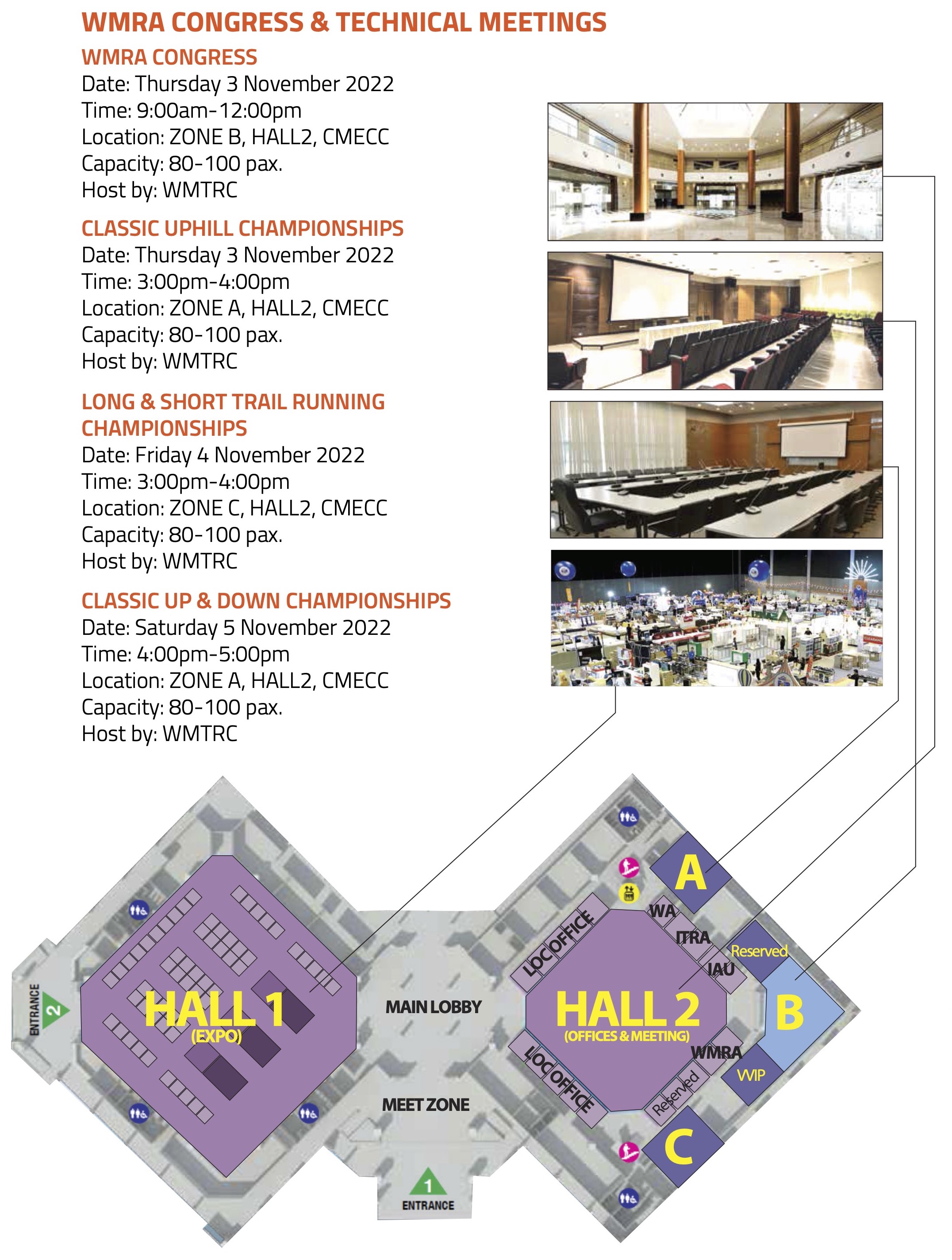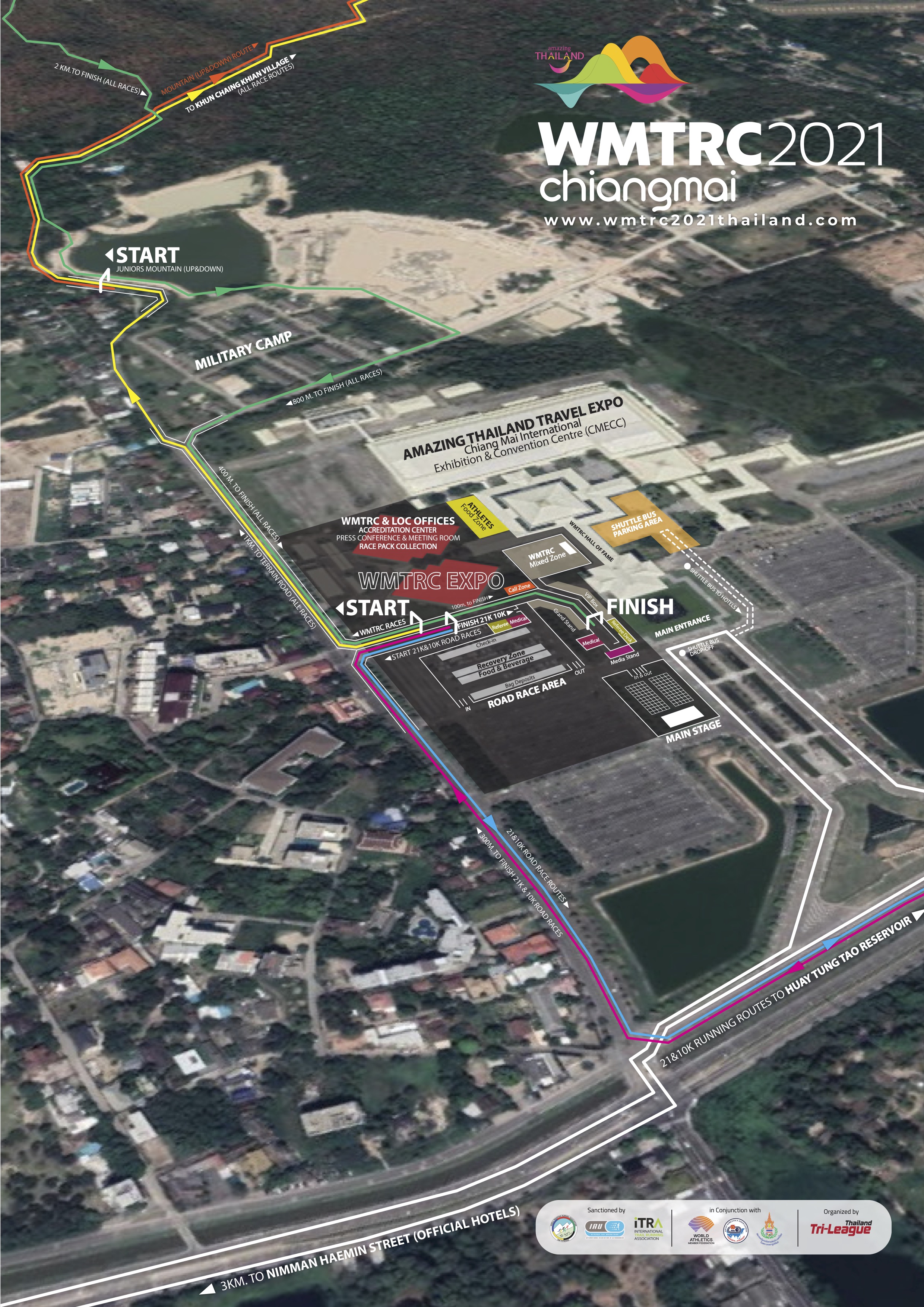 WMTRC HEADQUARTERS (CMECC)Operation Periods: November 1st – 6th, 2022CHIANG MAI INTERNATIONAL EXHIBITION & CONVENTION CENTER (CMECC)Address: 456 Chiangpuak Road, Mueang, Chiang Mai 50300 Thailand.Tel: +6653 010 572Fax: +6653 010 571Email: secretariat@wmtrc2021thailand.comGoogle map: https://goo.gl/maps/zV97PGmmxP5yYn8bA