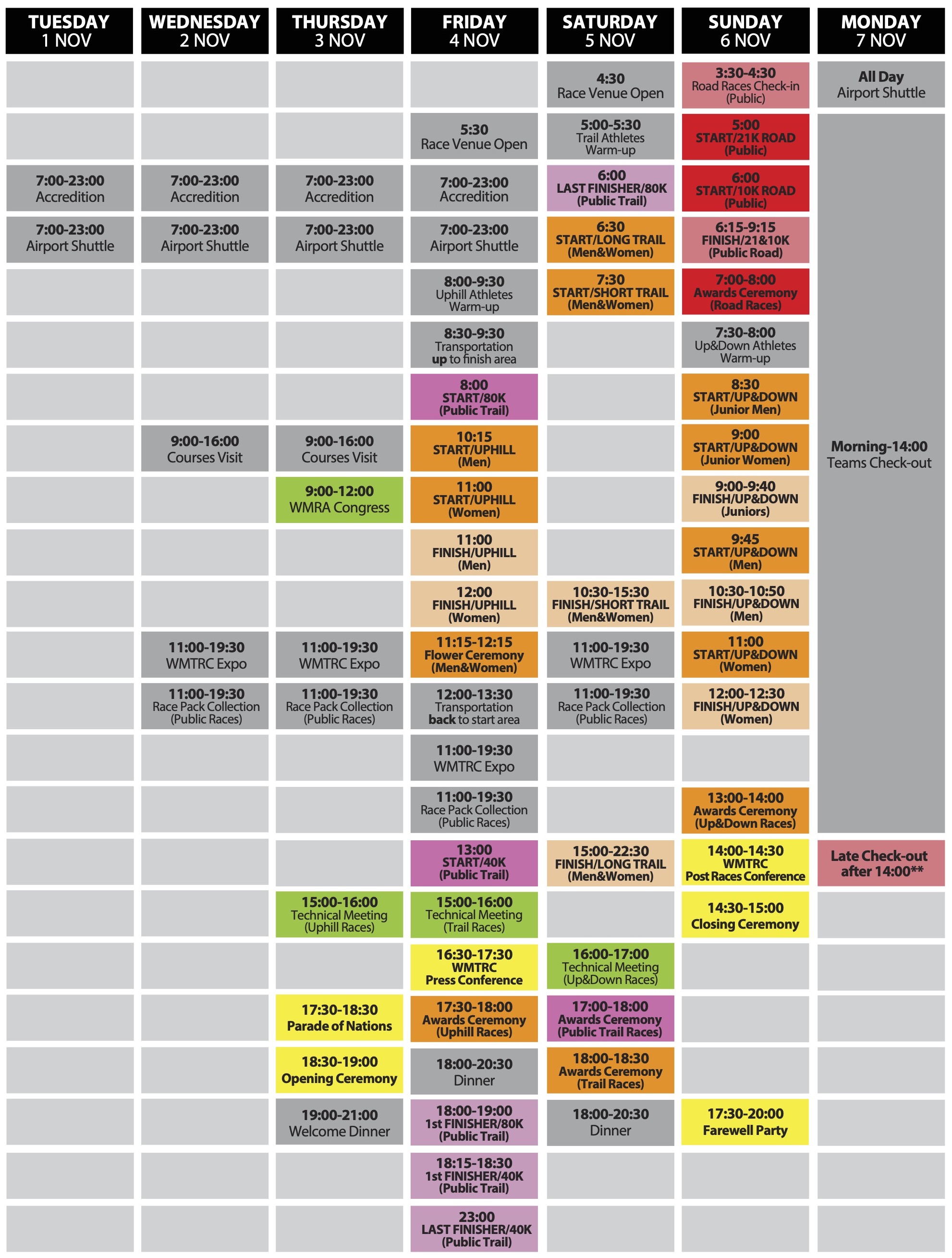 **Remarks: Shuttle buses to official hotels will be available after end of the Closing ceremony.