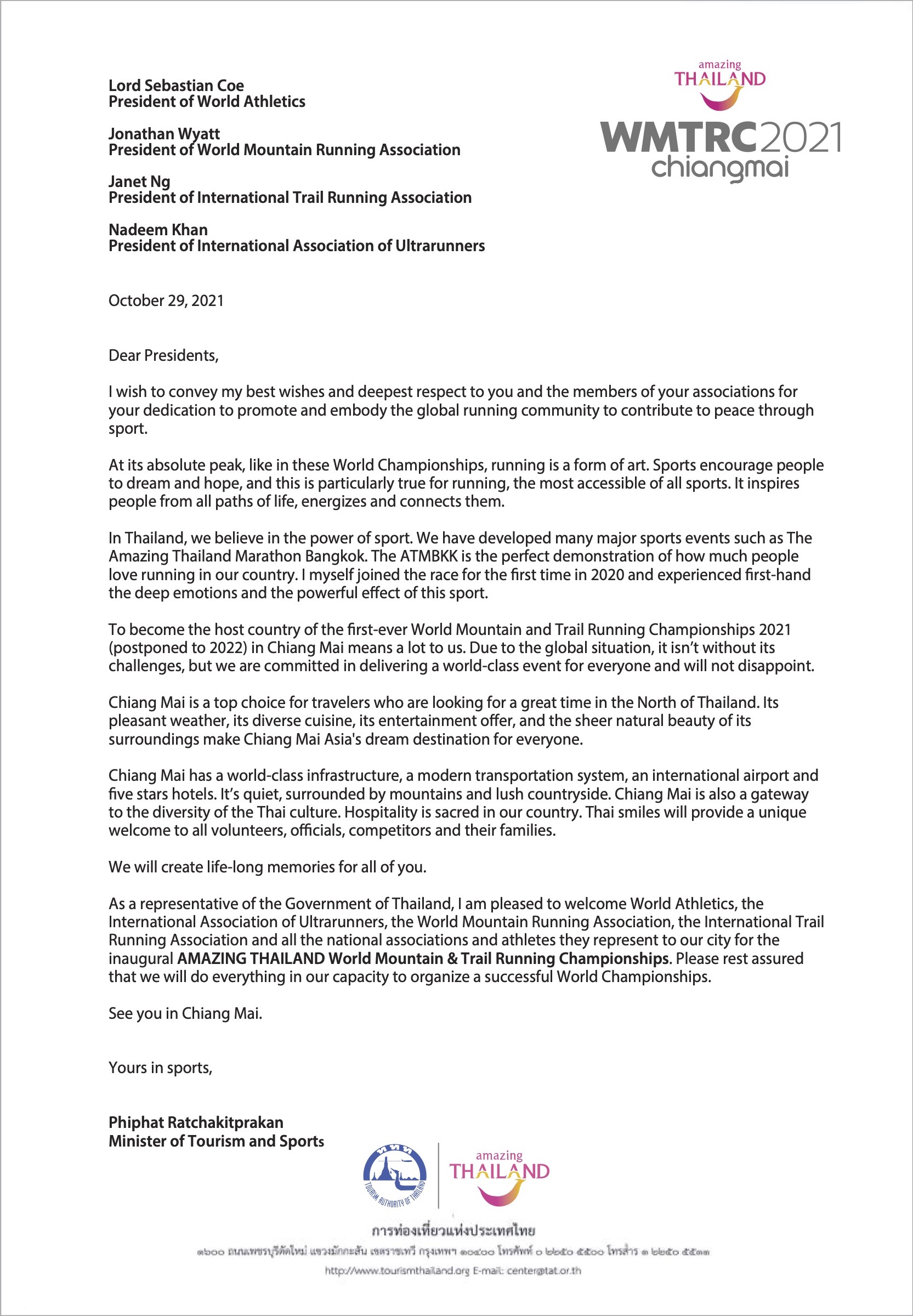 MESSAGE FROM MINISTERPhiphat Ratchakitprakan(Minister of Tourism and Sports) |