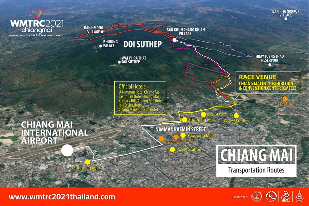 LOC CHIANG MAI OFFICE (PRE-RACE)Operation Periods: October 18th – 31st, 2022KANTARY HILLS CHIANG MAI HOTEL (LOC OFFICE)Address: 44/1-4 Nimmanhemin Road, Soi 12, Suthep, Mueang, Chiang Mai 50200 Thailand.Tel: +6653 222 111, +6653 400 877Fax: +6653 223 244Email: secretariat@wmtrc2021thailand.comGoogle map: https://goo.gl/maps/xiorYQpRKJ3Uobrd8